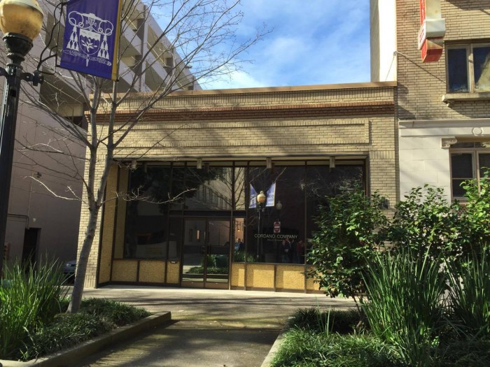 "Opened as opened as the Marigold Café 1932, this building was the home of Buddy Baer's jazz club until 1947, when the façade was remodeled and it became the Majestic theatre. It was remodeled again in 1965 by Mid-Century Modern architect Carter Sparks as a realty office, who added a penthouse at building rear." - William Burg, Feb 2016 Jazz Tour brochure.