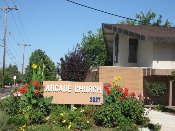 "UNDER CONSTRUCTION - This drawing by the architectural firm of Sparks and Thaden shows the Arcade Baptist Church as it will appear when completed at 3927 Marconi Avenue. The structure, which will have a seating capacity of 900 persons, will contain 13,744 square feet of floor area. In addition to the sanctuary, it will house offices, the pastor's study, a choir room, prayer room, baptistry, dressing rooms and a youth activity center. The cost of construction is estimated at more than $100,000. Considerable work will be done by volunteers. The Rev. Lee W. Toms is pastor of the Arcade Baptist church."