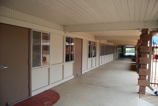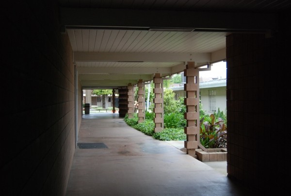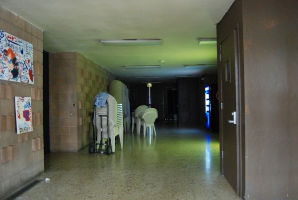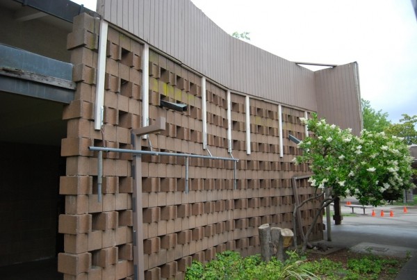 Extensive exterior modification, though recognizable features remain. Interior condition unknown (likely gutted -- now a gymnasium)