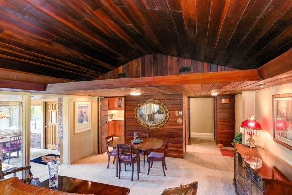 "I have to laugh, because my mom is pretty traditional. She didn't want too much of Carter's new fangled thinking when he was designing the house. .... They have a fabulous living room ceiling out of redwood that cannot be duplicated. I liked listening to the ideas that he had that she said no to. Sounds like Dad pretty much left it to Mom to determine design. Carter and Dad were great friends." -Email notes from the Original Owner's daughter, S P. 7/22/10
