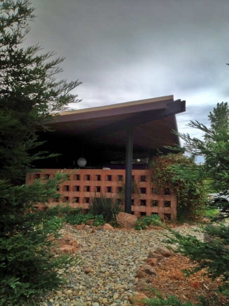 The screen block wall features the same broken face blocks and configuration as on the Arcade Baptist Church (1957; Sparks/Thaden).
