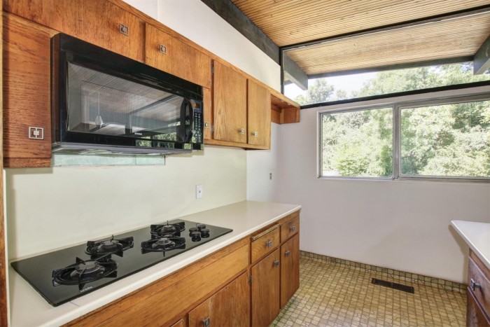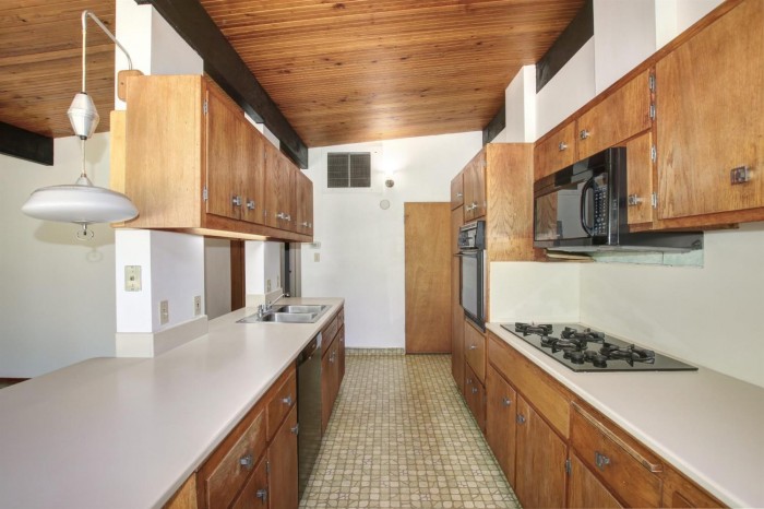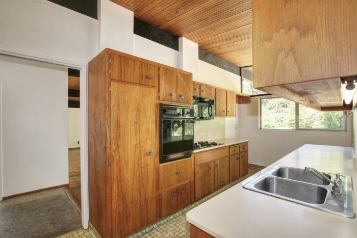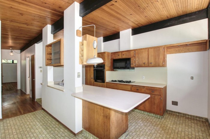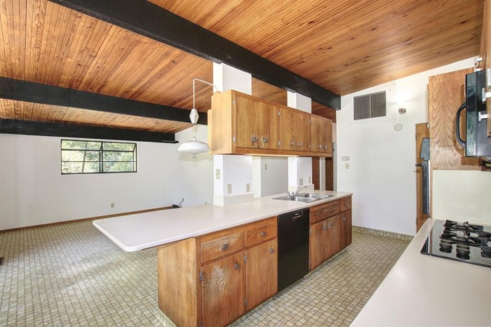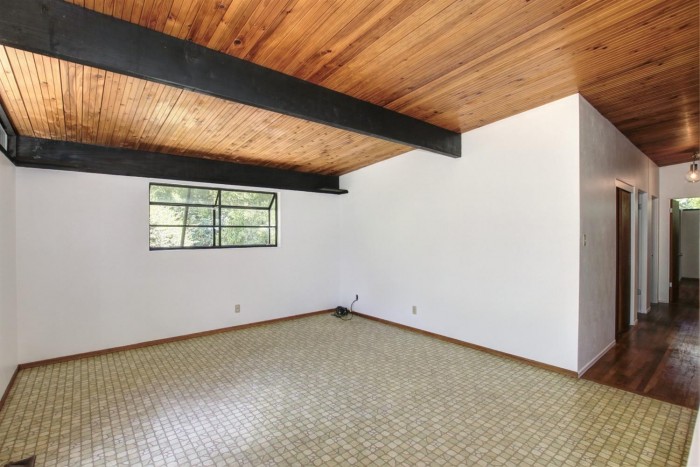 No fireplace, large lot, swimming pool. Pending for $995,000 and likely going to be demolished