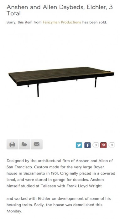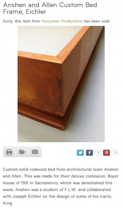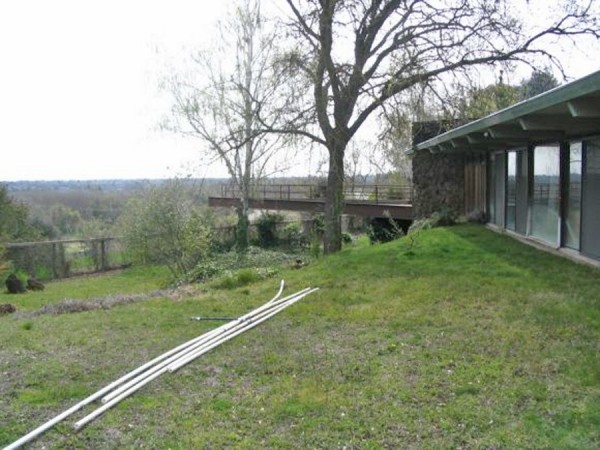 Lost to the bulldozer. Check out the amazing angles in plan, which imagines a bird in flight, and this house's proximity to the American River. Just caught these Bing Satellite maps before they had been updated to reflect the Palatial McMansion that is now on the site.