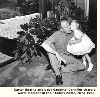 A young Jennifer in the Sparks' home carport, along with some magnificent automobiles. Circa 1965