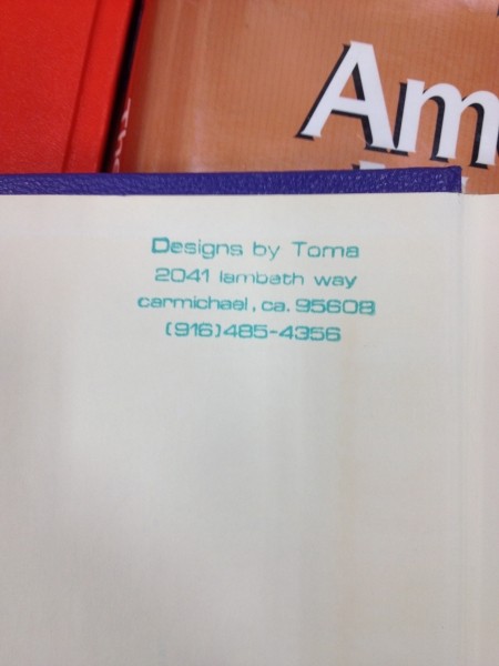"Designs by Toma" found as ownership stamp in book about Interior Design.