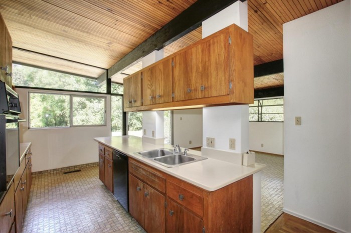 No fireplace, large lot, swimming pool. Pending for $995,000 and likely going to be demolished